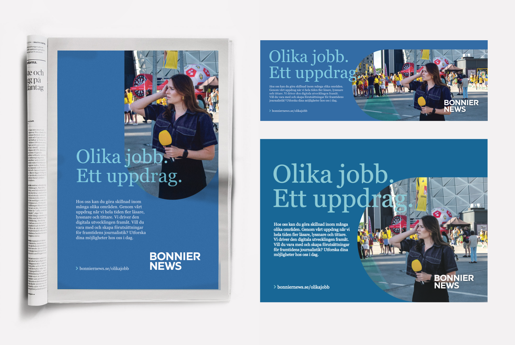 Bonnier News behövde hjälp med att bygga och “ladda” sitt varumärke för rekrytering. De vill visa att företaget är mer än bara nyheter och journalister. Att Bonnier är tech-folk, marknadsförare, innovatörer och mycket mer. Istället för att fokusera på ett jobb, och en enskild roll i taget, så tog vi fram ett koncept som visar hur människor med olika expertis arbetar ihop för att skapa de tjänster som stärker det fria ordet.